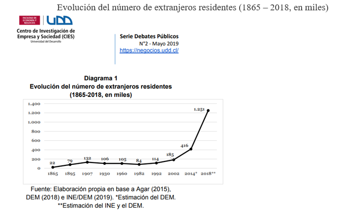 No solo ha aumentado su número, sino que su procedencia también ha cambiado. A las colonias europeas y peruanas que fueron las recurrentes hasta fines del siglo pasado, se ha abierto hoy una ventana hacia otras latitudes, siendo Latinoamérica el lugar de proveniencia de la mayoría de los extranjeros con residencia en el país (Godoy, 2019). Entre 2014 y 2017, Chile ha visto aumentar en un 232% el número de inmigrantes que viven en el país, pasando de 416.082 a 966.363, lo que supone el mayor incremento inmigratorio en América.
